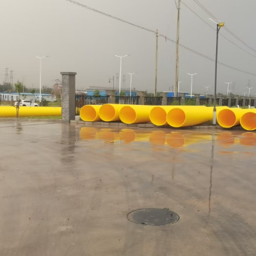 The HDPE shell pipe is produced by vacuum calibrating method with smooth internal and external walls, long service life, good anti-corrosion insulation and mechanical performance.