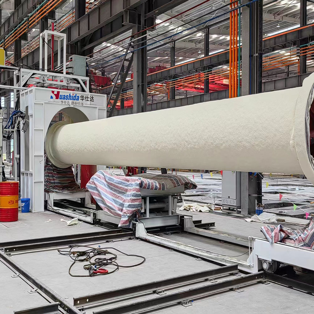 Huashida's independently developed Advanced PUR Spray PE Wrap Insulated Pipe Manufacturing System integrates three core sections: an external shot-blasting and derusting production line, a polyurethane spray-foaming line, and a PE wrap-winding production line.